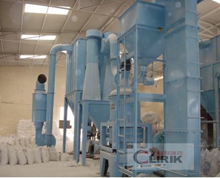 The main bearing and each dial are driven by electromotor of main machine through reducer, and numbers of rollers, which are rolling in the ring, are driven by dial through plunger. After crushed by hammer crusher, the big materials become small ones and are sent to storage hopper by elevator and further sent to the middle of first dial evenly by the electromagnetic vibrating feeder and feeding pipe. The materials will be driven to the edge of dial by centrifugal force and fall down into the ring, crushed and grinded by roller, and become powder after production of three rings. The high pressure centrifugal blower will inhale air from outside and blow the crushed materials to classifier. The rotating turbo in the powder concentrator will make the coarse powder return to the mill and reground, while the fineness will mix with the air and go into the cyclone and be discharged in the discharge bin, which is at the bottom of it. The air, which mixed with very little fineness, will be purified by impulse duster and discharged by blower and muffler.
